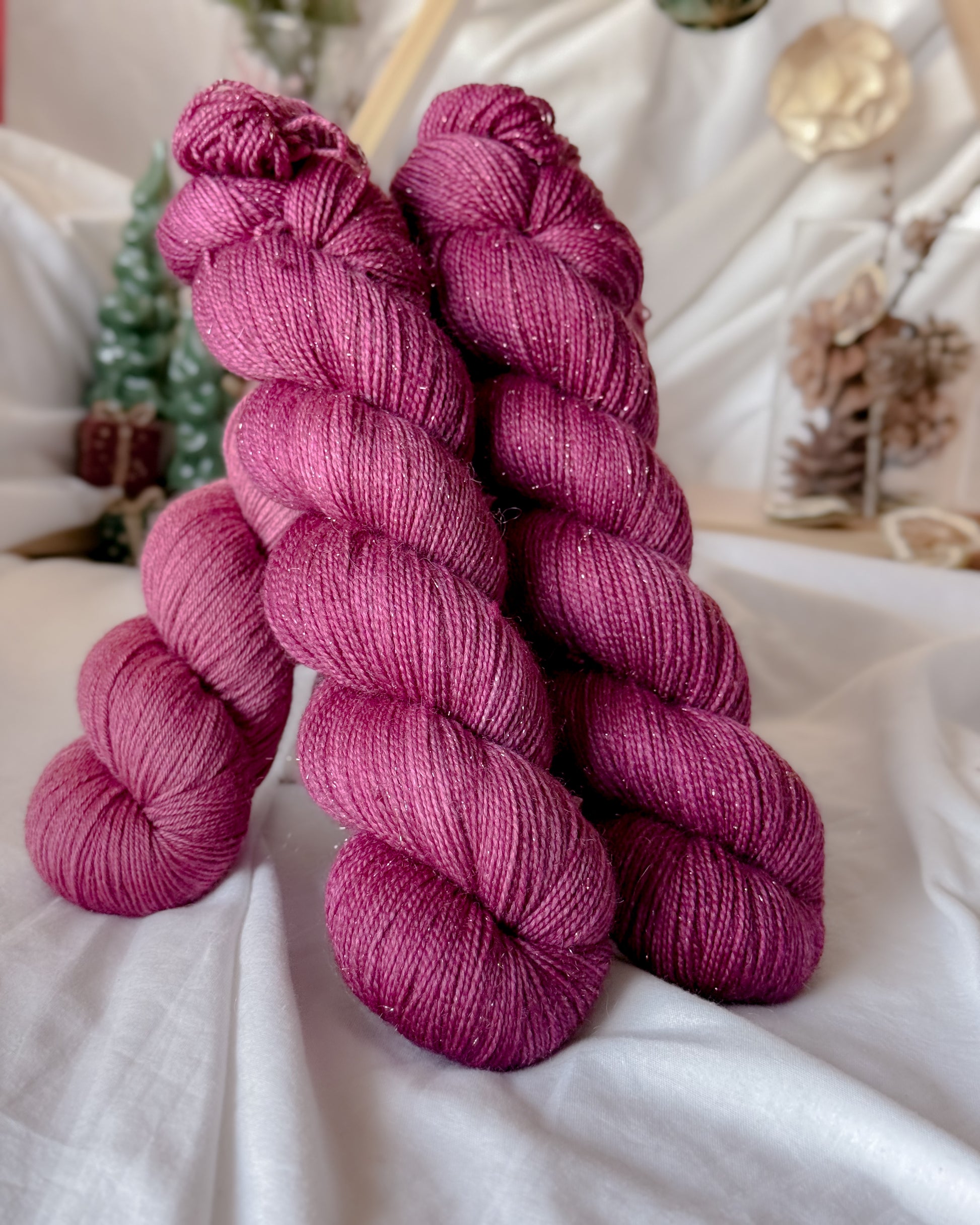 Garnet består av 75% Superwash Merino, 20% Nylon og 5% Stellina Gullglitter