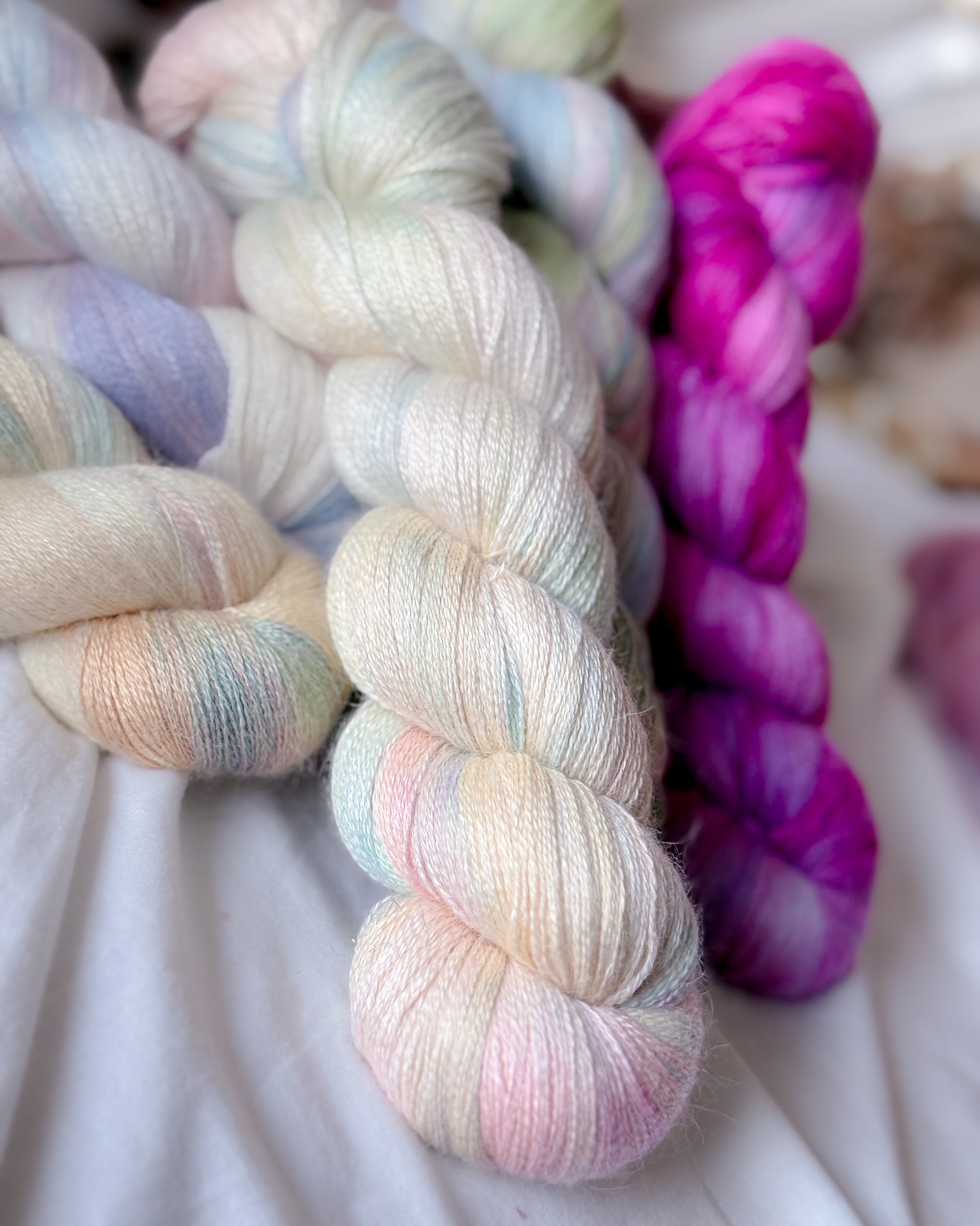Suri Silk er en supermyk følgetråd som kan erstatte Kid Silk Lace.