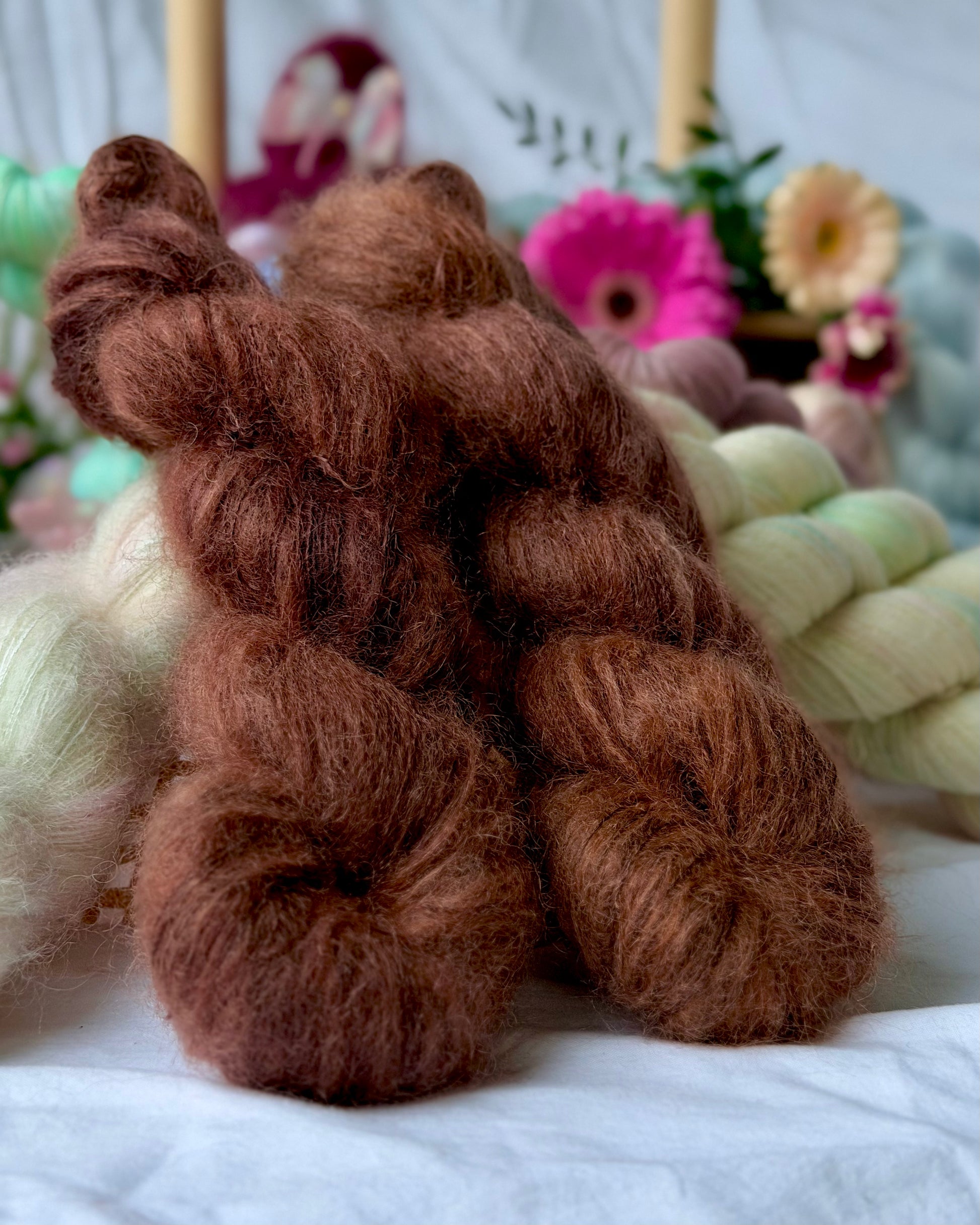 Garnet består av 64% kid mohair og 36% silke.