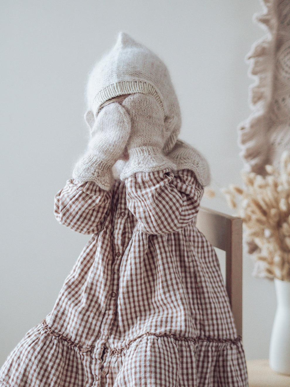 Denne pakken inneholder 1 hespe tynn ren merino + 1 hespe kid silk lace i hemmelig farge, fysisk strikkeoppskrift på Blondevotter fra KnitbyJacobsen, en søt maskemarkør og et par maskestoppere 🎀 Vi pakker den inn i cellofanpose, perfekt vertinnegave eller julegave til strikkeren eller deg selv 🎁