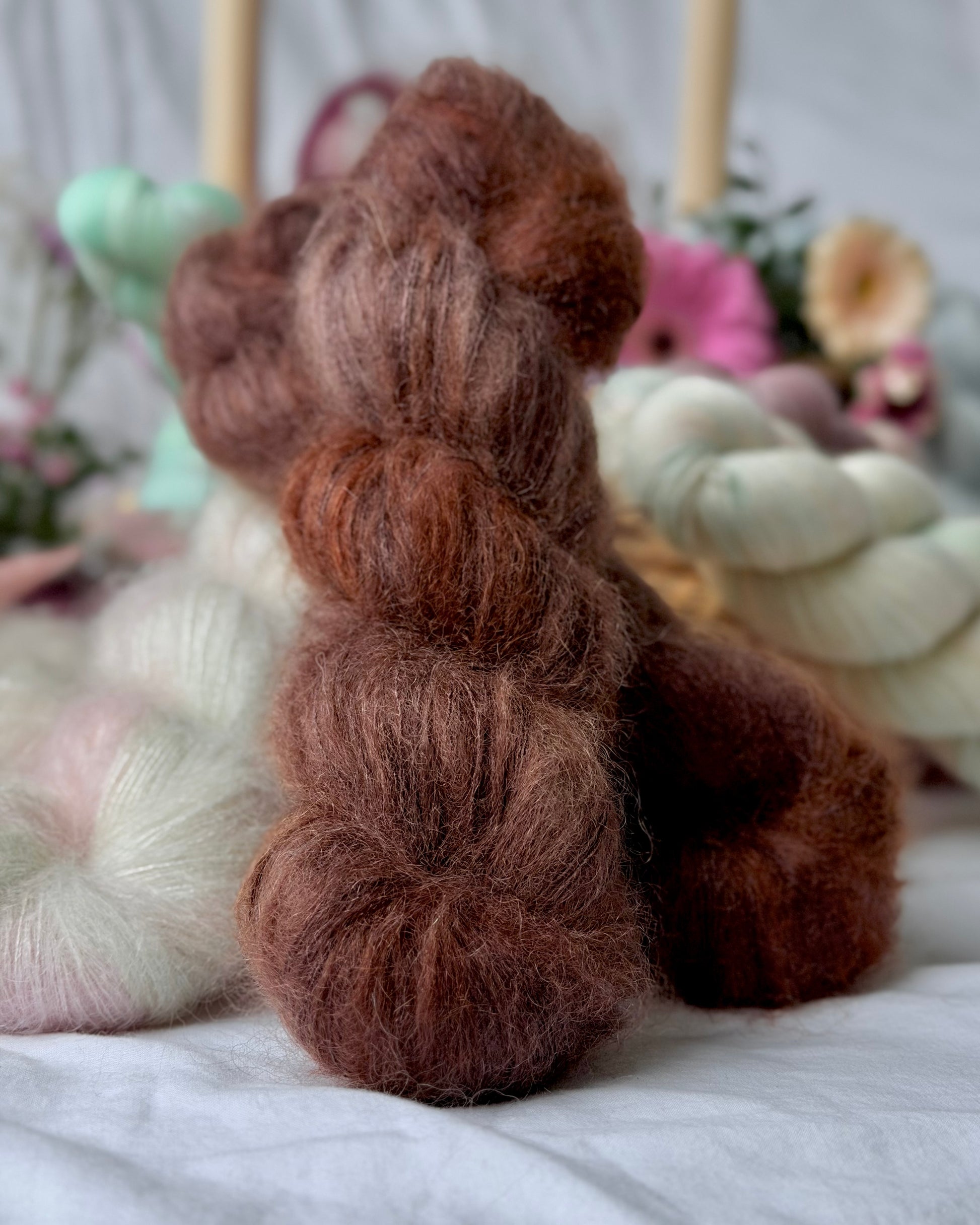Garnet består av 64% kid mohair og 36% silke.