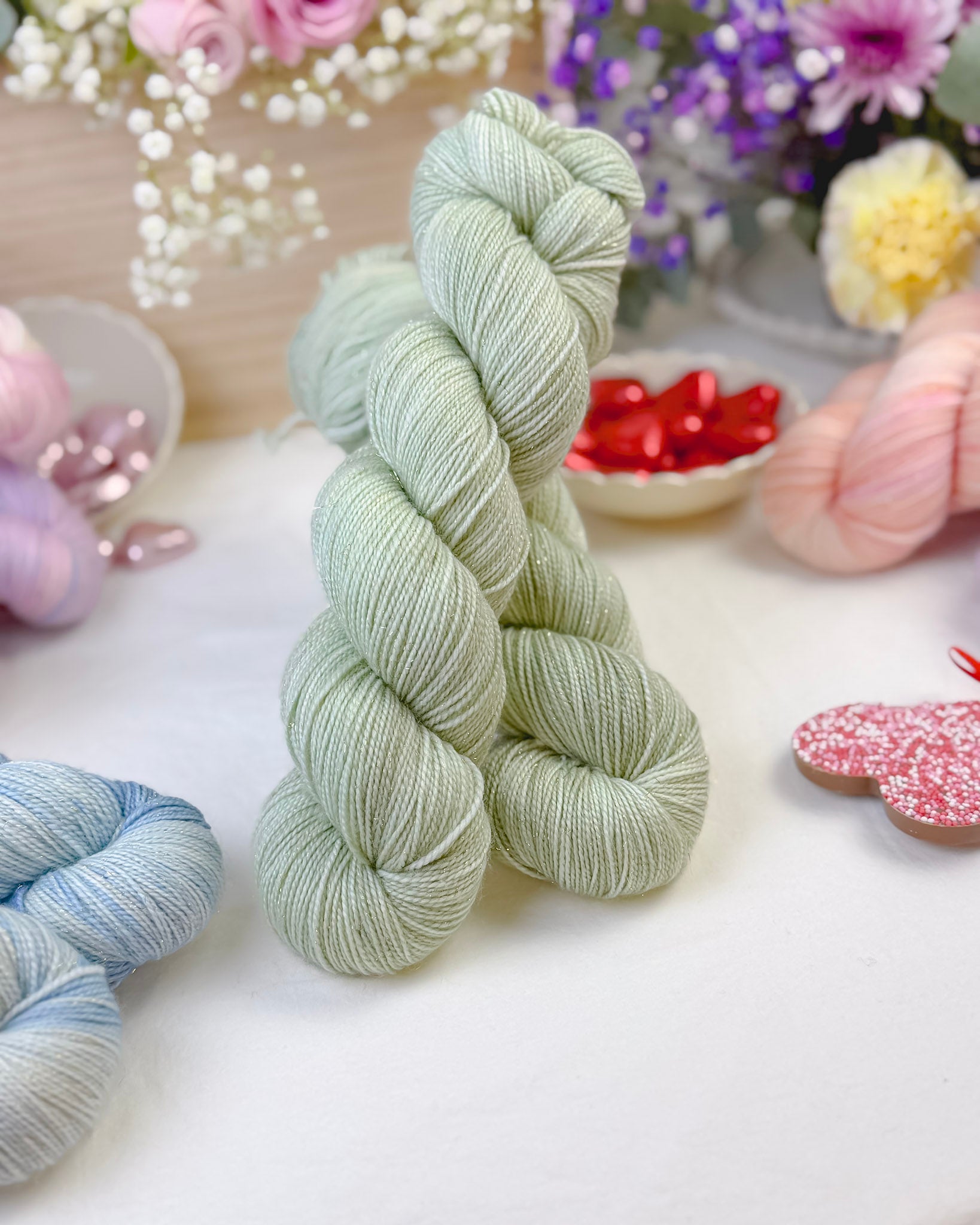 Superwash er en behandling som påføres ullfibre for å gjøre dem mer motstandsdyktige mot krymping. I tillegg endres fibrenes evne til å absorbere fargestoff, som gjør at fargene aldri blir like på Bejeweled vs. på Tynn Ren Merino. Bejeweled-hespene er derfor limited edition <3