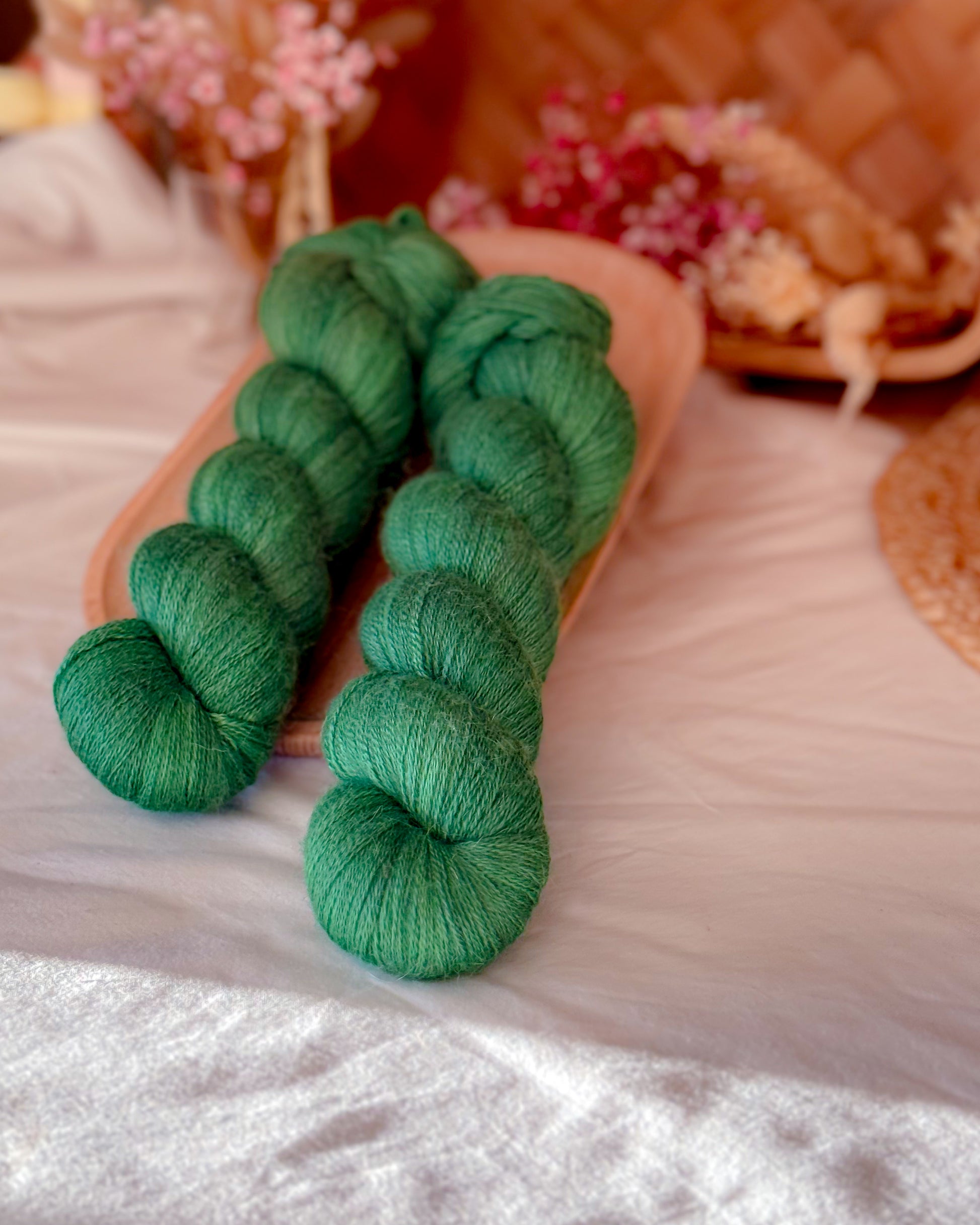 Ett hespe tilsvarer ca 3 hesper av Kid Silk Lace.