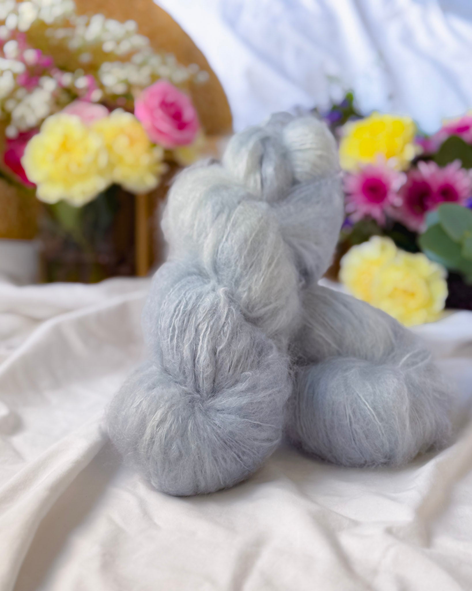 Supermyk Fat Mohair med merino. Fin alene eller i dobbel tråd.