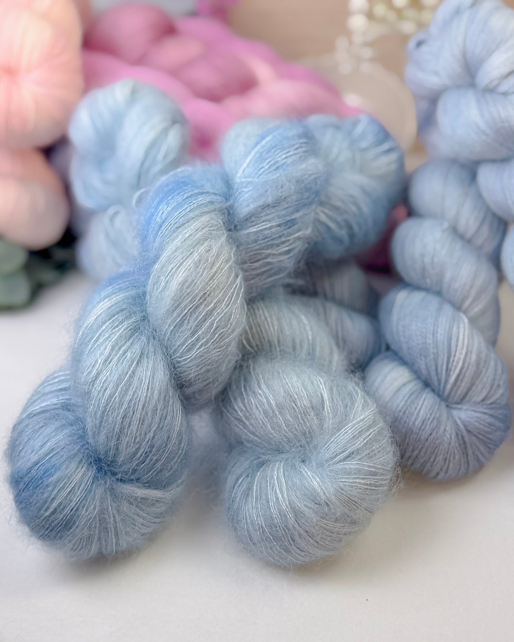 Garnet består av 64% kid mohair og 36% silke.