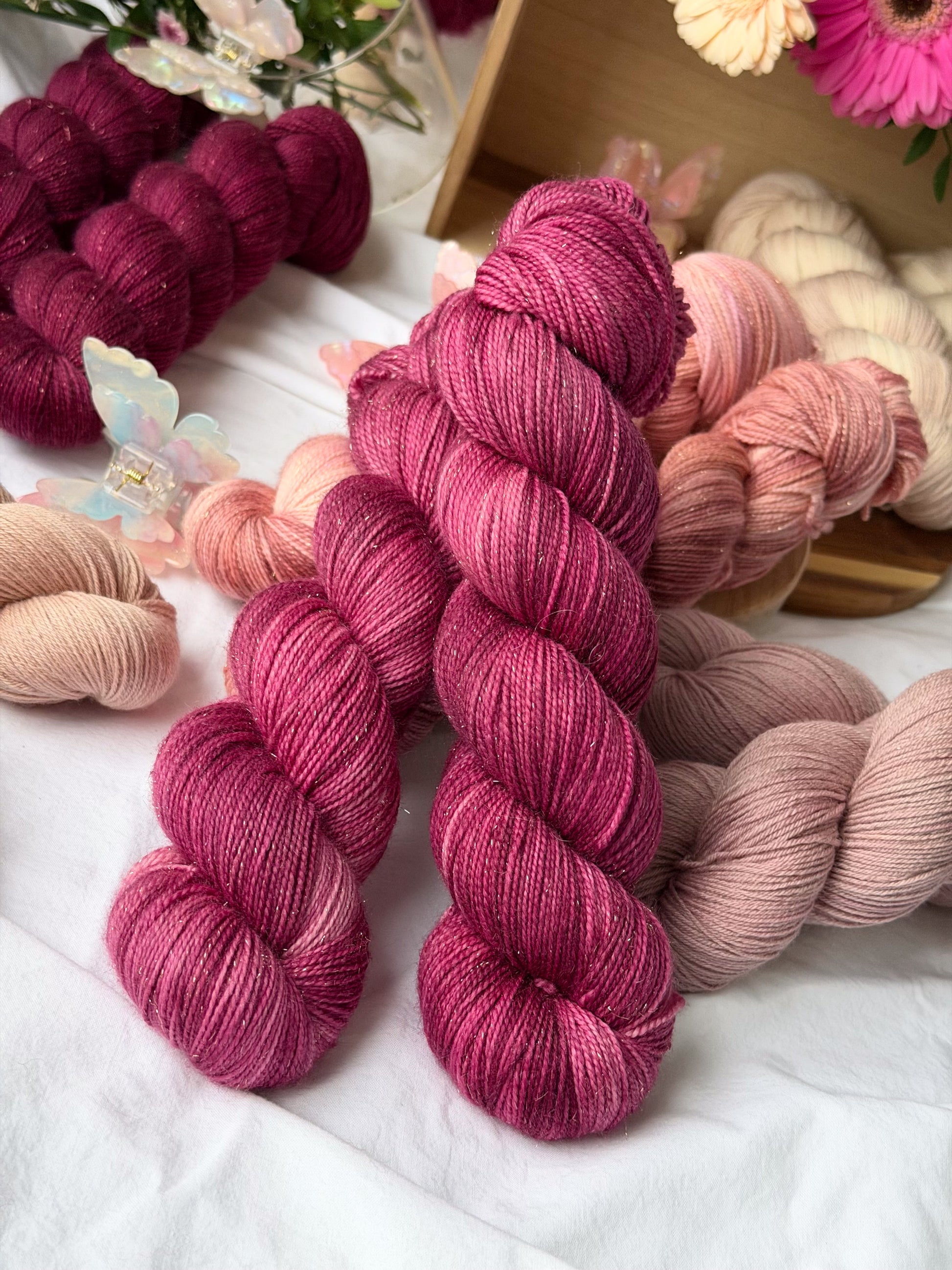 Superwash er en behandling som påføres ullfibre for å gjøre dem mer motstandsdyktige mot krymping. I tillegg endres fibrenes evne til å absorbere fargestoff, som gjør at fargene aldri blir like på Bejeweled vs. på Tynn Ren Merino. Bejeweled-hespene er derfor limited edition <3